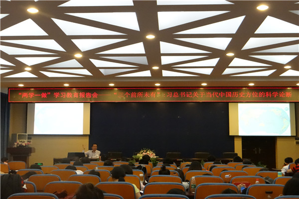 (通讯员 杨楠)6月2日晚,湖南大学马克思主义学院院长、博士生导师陈宇翔教授做客我院书山论坛,为学院“两学一做”学习教育带来了主题为“‘三个前所未有’——习近平总书记关于当代中国历史方位的科学论断”的讲座。讲座由我院党委书记龚向明主持。副院长肖燕雄、闵素芬、周国清及全院党员教职工参加了此次讲座。
