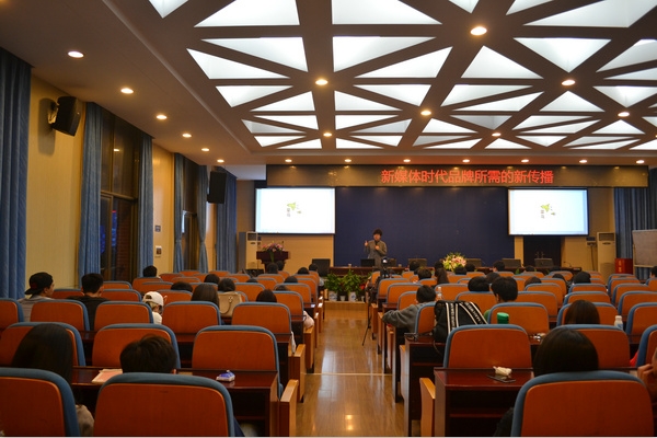 冯耀丹 庞雅婧)4月27日晚,宣亚国际品牌管理(北京)股份有限公司总裁助理、湖南公司董事总经理伊沙晨子在我院书山论坛,以“新媒体时代品牌所需的新传播”为主题开展课堂教学。
