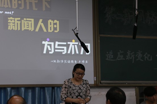 卢雅君以一个短视频为切入点,结合当下热点新闻事件,围绕真实、表达、梦想三个方面讲述了“新媒体时代下新闻人的为与不为”;赵卫岭以自己参加的一次调研活动为例,展开了题为“当代大学生与社会主义核心价值观漫谈”的讲述,他还对如何更好地贯彻社会主义核心价值观提出了两点建议;马铁泉则是和大家分享了他对“新媒体和马克思主义新闻观的结合”的看法。