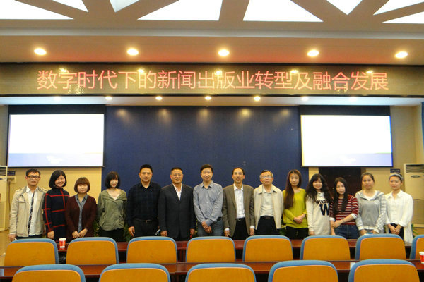 (通讯员 牛迪 蒋怡夏)425日晚,国家百千万人才工程人选、天闻数媒科技有限公司总经理向江做客我院书山论坛,以“数字时代下的新闻出版业转型及融合发展”为主题开展讲座。我院党委书记龚向明,副院长周国清,编辑出版学系教授陈宏平、易图强参加讲座。讲座由我院党委书记龚向明主持。