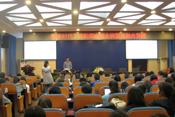向江分别从时代背景、技术驱动力、转型及融合发展、发展路径四个方面,介绍了数字时代下新闻出版业所面临的困境及未来的发展方向。他提出,“屏媒一定会取代纸媒,只是时间问题”,同时还提醒同学们要用开放的眼光看待世界。在分析新闻出版业的现状时,他认为与终端用户需求隔绝是其发展最大的阻碍。他还谈到,新闻出版业应依靠向数字出版转型及媒体融合来继续谋求良性发展。