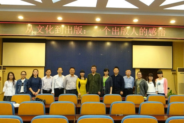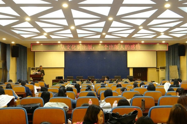 讲座由学院党委书记龚向明主持,校友总会秘书长孔春晖,学院副院长周国清、党委副书记王云及编辑出版学系陈宏平教授、易图强教授、系主任王海刚副教授和学院200余名学生共同聆听了讲座。