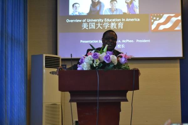 麦克菲尔校长详细地向同学们介绍了美国中田纳西州立大学的校园和学科教学现状。中田纳西州立大学不仅拥有悠久的历史、美丽的校园和现代化的教学设施,而且学科全面,会计学、航空、混凝土行业管理、护理学、录音产业及管理、生物化学等专业及教师培训在美国独具声誉。创校至今,中田纳西州立大学已经诞生了三位诺贝尔奖获得者。