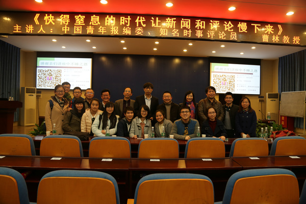 (通讯员 钟丽洁 曹晓静)12月2日晚,中国青年报编委、知名时事评论员曹林做客我院书山论坛,围绕“快得窒息的时代让新闻和评论慢下来”的主题开展讲座。讲座由我院院长蔡骐教授主持。