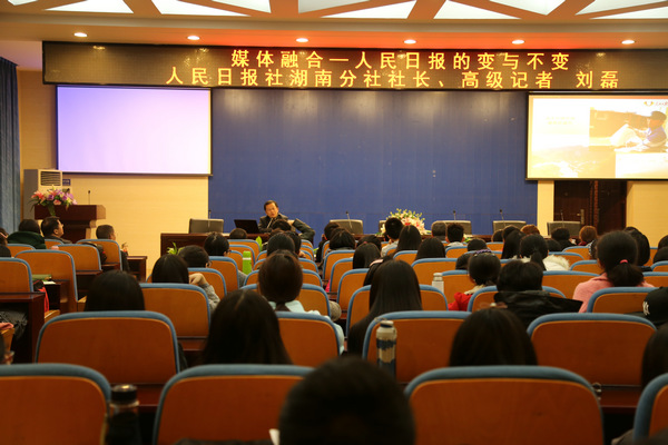(通讯员 曾慧珊 石曦浩 朱娟)11月16日晚,人民日报社湖南分社社长刘磊做客我院书山论坛,围绕“媒体融合背景下人民日报的‘变’与‘不变’”的主题开展讲座,探讨新媒体冲击下传统媒体的现状与发展趋势的问题。讲座由蔡骐院长主持。