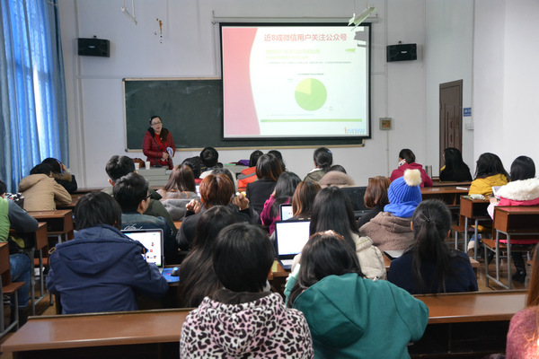 肖文娟认为,新媒体时代应从社交化、可视化两个方面讲好故事。首先,从体验层面,以QQ、微博、微信等为代表的新媒体产物社交化程度比较高。其次,从实战层面,她提出了成为一名讲好故事的新媒体小编所应具备的素质和能力,并且现场示范了如何操作网页后台,让同学们更直观地了解了运营媒体的过程;最后从各种新媒体技巧层面,肖文娟以“如何在新媒体时代讲故事”为主题展开论述,她说:“想讲好一个故事,首先一定要有视觉系路线,即善于运用图片,其次文本表达一定要走心,即要有代入感,要勇于表达观点和兴趣。”