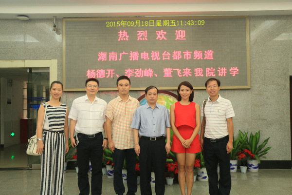 (通讯员 闫晓兰)9月18日上午,湖南都市频道创新拓展部副主任杨德开、公共事务部主任李劲峰以及主持人董飞在书山论坛为我院同学带来了一场关于电视直播节目技巧经验的讲座。