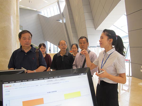 总占地面积约196亩的滨江文化园位于开福区新河三角洲上,西靠湘江、北临浏阳河,包含长沙市博物馆、市图书馆、市规划展示馆、市音乐厅和景观塔五个单体建筑。老同志们兴致勃勃的游览了刚刚对外开放的图书馆和规划展示馆,丰富的馆藏资源,创新的服务模式,让大家深深感受到作为长沙人,能越来越多的享受到政府提供的文化福利。
