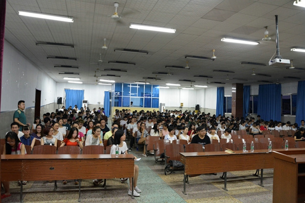 (通讯员 庄德通)7月2日晚,我院2014级学生期末考试动员大会在张公岭校区图书馆报告厅举行。我院新任党委副书记王云,院团委书记陈淼出席会议。会议由2014级学生辅导员张一博主持。 王云向在张公岭校区生活的一年的2014级学生进行了慰问,并向张一博老师表示了感谢。王云说,“岭上有岭上的好处,虽然大家活动空间有限,娱乐活动较少,但是远离了喧嚣,这里却成了一个读书学习的好地方。”她对我院2014级学生在张公岭一年所取得的成绩表示了肯定,并希望同学们回到本部之后,珍惜本部优越的学习条件,学业有成,全面发展。 陈淼向同学们宣读了考试规章制度和注意事项,并对搬回本部校区的工作安排进行了简单介绍和问题解答。她说道:“马上就要放暑假了,很多同学都有了自己的假期安排,但无论如何要把安全问题放在首位,祝愿大家能度过一个愉快的暑假。” 我院2014级全体同学出席动员大会。