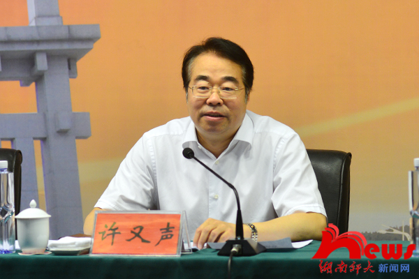 许又声对做好部校共建新闻学院工作提出三点要求。一要认清“共建”意义,积极主动地做好部校共建新闻学院工作。要认清共建工作的重要性、必要性和紧迫性,站在战略和全局的高度,充分认识部校共建新闻学院的重要意义,更加自觉地把马克思主义新闻观贯穿到共建工作全过程,更加积极主动地做好部校共建新闻学院工作。二要做好“共建”文章,努力培养为我所需、为我所用的新闻人才。许又声指出,开展部校共建,就是要从新闻工作者培养的源头抓起,从坚持和发展中国特色社会主义的战略高度,共同培养为我所需、为我所用的一流新闻人才。他强调,要把实践提高作为人才培养的重要手段,建立以湖南日报报业集团、湖南广播电视台、湖南出版投资控股集团、新湘评论杂志社为重点的实践教学基地。三要落实“共建”责任,推动我省部校共建新闻学院工作走在前列。要加强组织协调,加大支持力度,落实共建经费,努力走出一条新闻教学与新闻实践深度融合的新路子,推动我省部校共建新闻学院工作走在全国前列。他表示,省委宣传部将在近四年内每年以项目建设方式安排专项资金支持学院建设。同时,他希望省直新闻出版单位、省教育厅充分发挥各自优势,在项目资金、实践基地建设等方面给予重点支持。