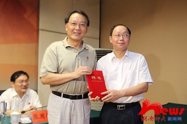 启动仪式上,李发美与刘湘溶签订了部校共建太阳集团tyc151协议。李发美宣读省委宣传部“关于成立部校共建太阳集团tyc151太阳集团tyc151院务委员会的通知”文件。刘湘溶为孔和平等11人颁发共建太阳集团tyc151第一批兼职教授聘书。