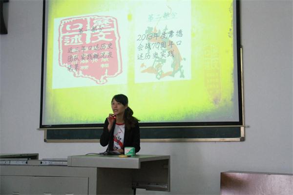 紧接着历史文化学院口述史社会实践团进行了宣讲,自2011年起他们连续三年开展以口述历史为主体的社会实践活动,他们以传播中国历史为己任,将目光定位在那些即将消逝的历史之上。他们在挖掘历史,在呼吁关爱历史,在彰显人间温情。