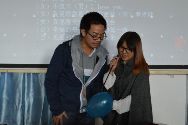 参加活动的选手们来自2013级各个班级,男女选手各六人,通过现场的抽签随机配对成为六组搭档,各自抽题选歌并进行了现场对唱。每一组选手的演唱都十分精彩,整场活动大家都充满了热情与激情,选手不仅歌声动人,与自己的搭档更有幽默搞笑的互动,给大家带来了很多的欢乐,现场不时爆发出阵阵笑声。演唱结束后,分别进行了评委投票和观众投票,本着公平、公正、公开的原则评出了本次活动的一、二、三等奖,并为获奖选手颁发了奖状。