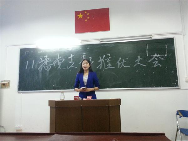 大会开始之前,11级播主班党小组党委书记唐泰首先上台致辞表示欢迎,并依次向大家介绍了伍悦和周航两位预备党员候选人的基本情况。会上,伍悦和周航两位同学依次进行了申请发言。