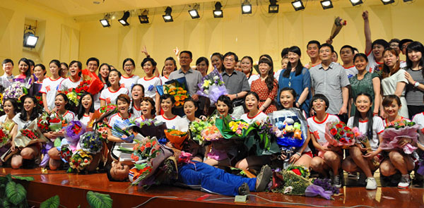(通讯员 刘信 唐泰)6月5日晚,我院2010级播音与主持艺术毕业汇报演出在音乐学院和悦楼举行。校党委书记张国骥出席,院党委书记龚向明、副院长闵素芬、党委副书记彭露与近300名师生一同观赏了晚会。