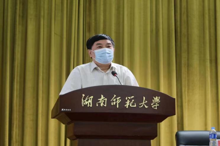 尹韵公发表致辞,向新生表达了热烈的欢迎与殷切的期盼,并希望同学们在本科四年的学习中,不仅要提升自身专业素养与认识能力,更要在湖湘文化中涵养自己,不断提升自我的海拔高度,成为胸怀广、视野宽、境界高、格局大、面向中国、面向世界的有为青年。