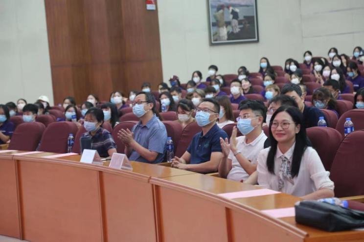 老生代表闫炜炜向新同学们分享了自己对大学的思考。她结合自身经历鼓励同学们多尝试常探索,尽志无悔功不唐捐;善于思考,明确方向,以静思生智,向内归因。同时她也提醒同学们别忘却了生活本身,要学会自我调节,享受生活。