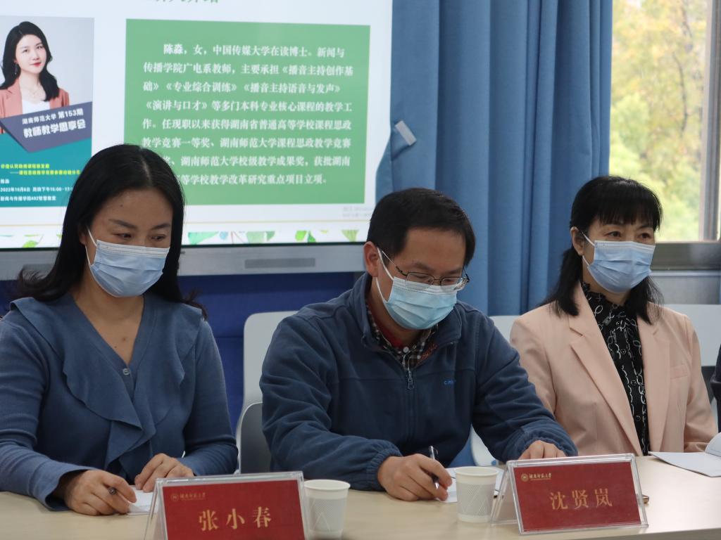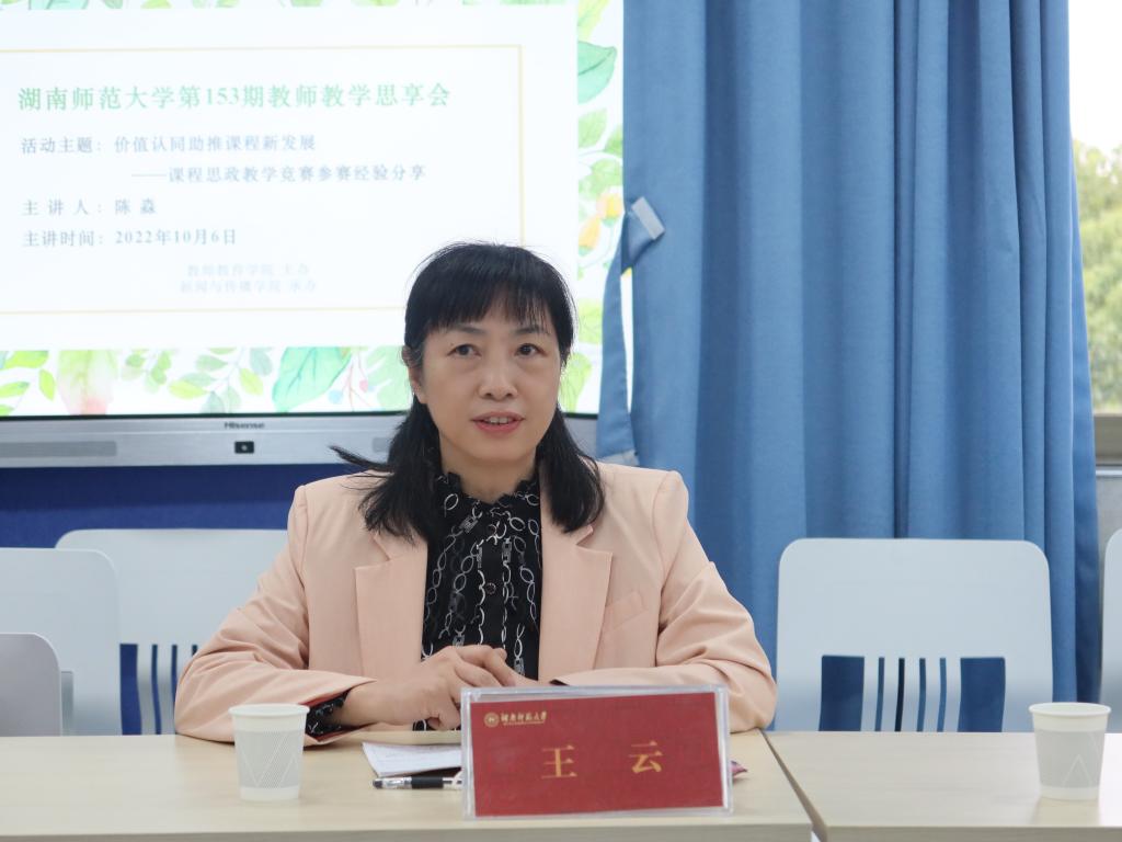 (通讯员 阳彬彬)2022年10月6日下午,我校第153期教师教学思享会在我院402智慧教室举行。本次活动由教师教育学院主办、我院承办,围绕“价值认同助推课程新发展——课程思政教学竞赛参赛经验分享”这一主题开展。我院党委书记沈贤岚、正处级组织员王云、党委副书记张小春、副院长燕道成、我校教学督导胥陆华、教师教育学院教师教学能力发展科科长廖志华等30余名教师出席会议。会议由我院教学副院长李琦主持,广电系教师陈淼老师主讲。