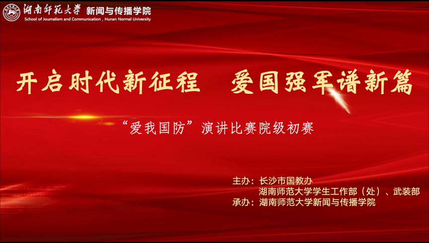 (通讯员 吴紫嫣)国防教育是社会思想教育总体系的重要组成部分,是国防建设的思想基础。为加强我校学生对国防的认知与高度热爱,10月15日下午,2022年太阳集团tyc151“爱我国防”主题演讲比赛院级初赛于太阳集团tyc151101教室准时召开。此次比赛由长沙市国教办、太阳集团tyc151学生工作部(处)、武装部主办,太阳集团tyc151太阳集团tyc151承办,由院级选拔出一至两位选手参加校级决赛,最终向省市级单位推选我校优秀选手代表参赛。