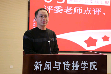 十支队伍全部展示完毕后,沈贤岚对此次汇报进行了点评、讲话。他对各个团队的实践成果表示了高度赞扬,代表学院对付出了辛勤努力的团队与个人表示感谢。他肯定了此次社会实践中各个团队对于主题的选取,范围涵盖了赓续红色基因、传统文化传承、乡风文明、产业创新等多个方面;指出大学生要守正创新,为社会进步注入新鲜动力,思想发展须践行社会主义核心价值观、把握时代脉搏、不辜负习近平总书记殷切希望、坚定不移听党话跟党走;提出了各位新传学子应将个人命运与国家的命运紧密相连,关注国情民生,了解社会动态,勇做国家发展的弄潮儿的期望;鼓励新传学子要让青春在全面建设社会主义强国中绽放绚烂之花,要在实践中深度发掘、切实践行,要持之以恒地与三下乡的地方保持联系以巩固实践成果。