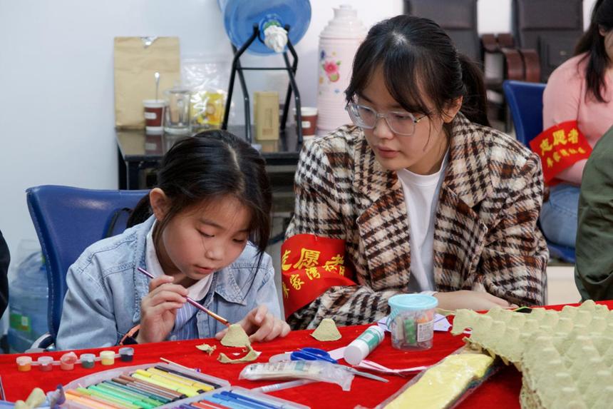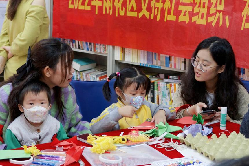 此次活动中,志愿者们通过手工制作以及废物再利用,同小朋友一起利用纸板、水果网等材料,制作简单工艺品,使小朋友在实践中感受环保。小朋友们在与志愿者学习合作中,学习了许多手工制作技能,并意识到了环保的重要性,活动现场欢声笑语连连。在制作工艺品的过程中,小朋友和志愿者们的距离更近了。