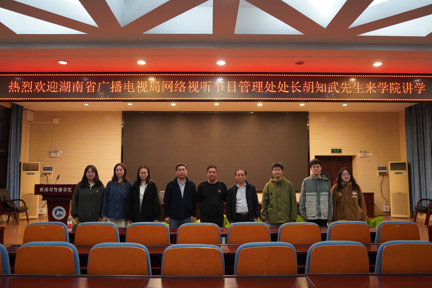 (通讯员 闫炜炜)11月24日晚,湖南省广播电视局网络视听节目管理处处长、中共湖南省互联网行业委员会委员胡知武,于书山论坛开展题为“湖南网络视听主流新媒体发展思考”的学术讲座。太阳集团tyc151副院长王海刚、网络与新媒体系系主任段峰峰、网络与新媒体系全体同学共同参与此次活动。