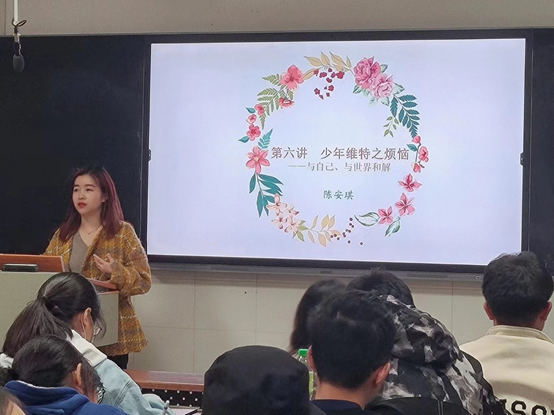 本次课程以“少年维特之烦恼——与自己与世界和解”为主题,首次采用匿名提问箱的新型教学方式收集学生心理困惑,结合课程内容,针对性展开教学。