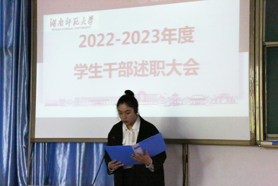 (通讯员 刘乐怡 李岩)为进一步加强学生组织建设,提高学生干部工作主动性,加强管理与服务水平,4月12日中午,我院于301教室召开2022-2023年度学生干部述职大会。会议由2022级播音主持艺术专业黄颐晨主持。