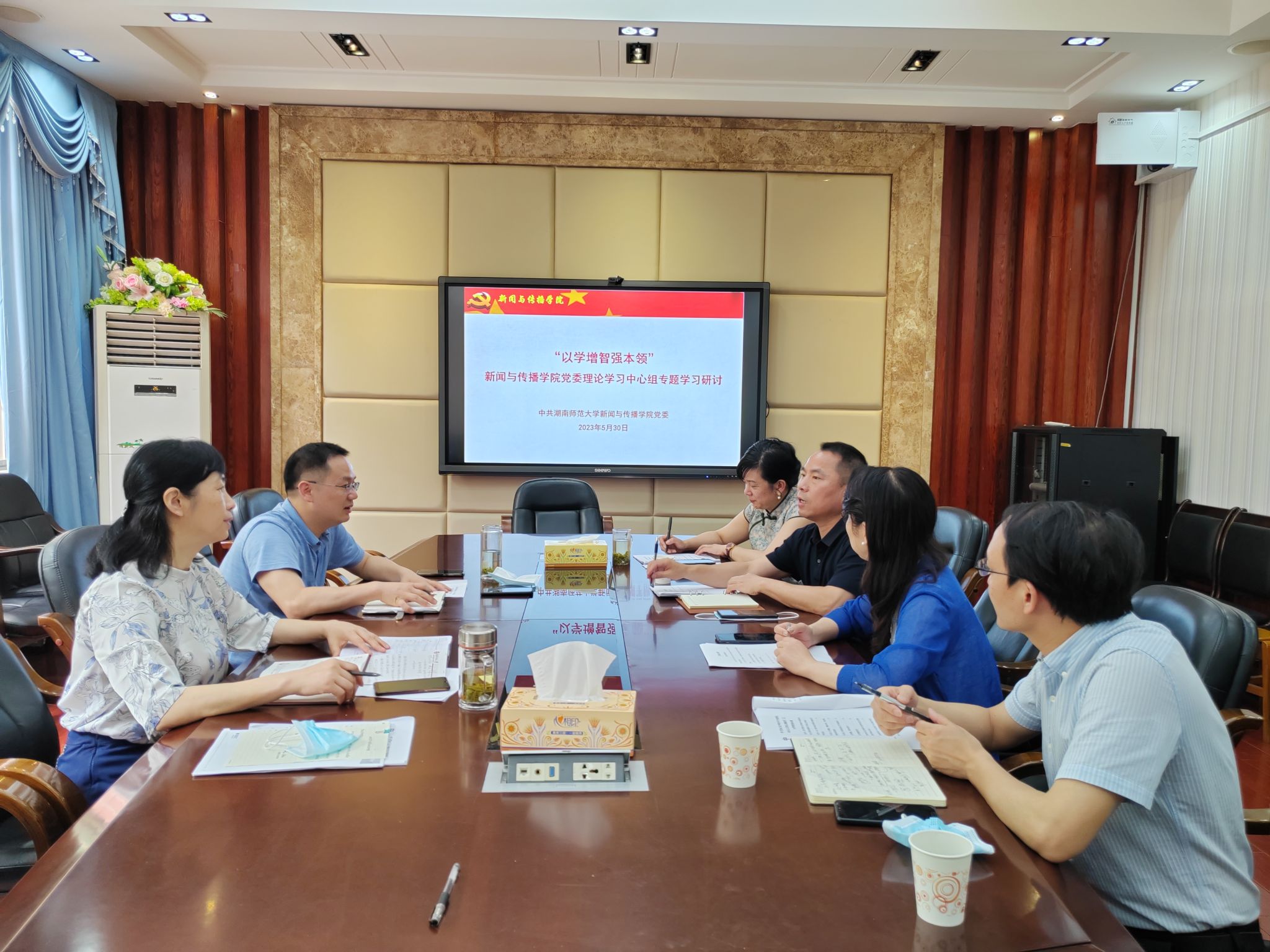 2023年5月30日上午,新闻与传播学院在二楼会议室召开“以学增智强本领”理论学习中心组专题学习研讨会。王云、燕道成做中心发言,会议由院党委书记沈贤岚主持,党委中心组成员参加会议。