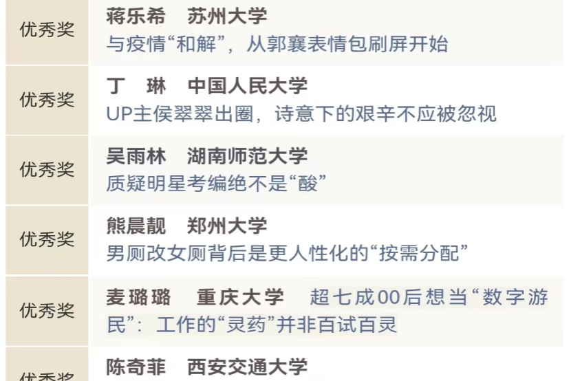我院获奖作品《囤货居奇不可取,哄抬药价要狠刹》和《质疑明星考编绝不是“酸”》不论是从用词,句子还是修辞,都展现出生动形象的评论语言特色;通过巧妙的标题,独特的角度以及恰当的评论方式展现出新传学子精良的评论技巧和理性,创新,批判以及灵活的良好思维品质。
