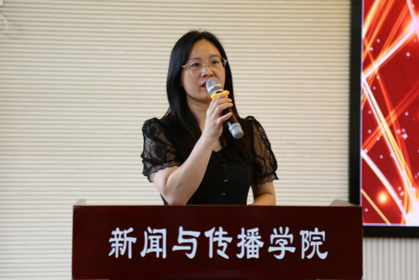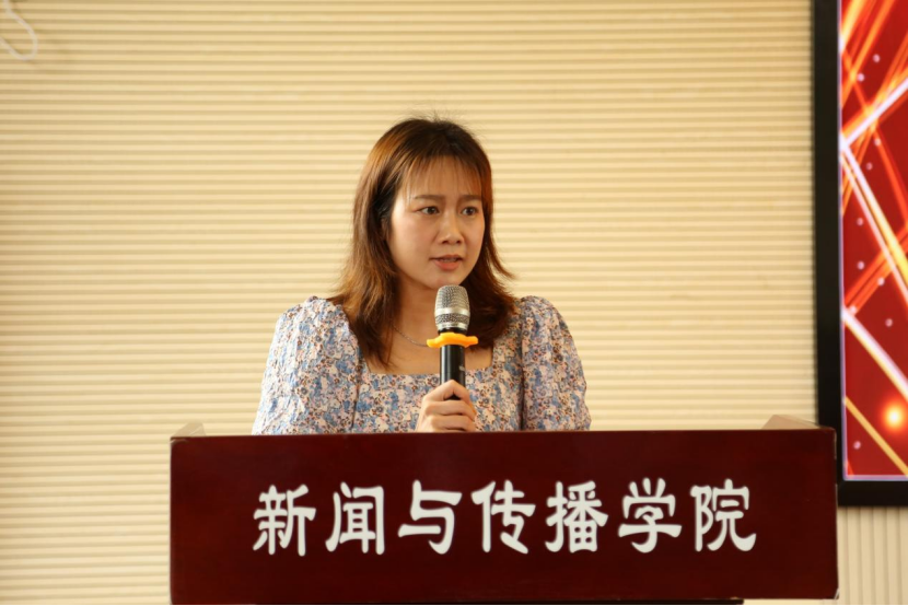 沈贤岚致大会开幕词,代表学院党委向校团委的领导老师表示感谢,向为学院团学工作奋斗的老师和同学致以崇高的敬意,总结我院过去一年团学工作成绩并给予充分的肯定。沈贤岚提出,我院学生代表要努力成为政治上的明白人、工作上的有心人、同学们的领路人,进一步优化新传院团学工作。