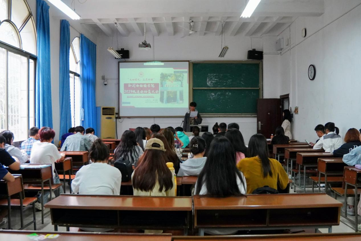 蔺浩楠介绍了体育部为此次运动会所做的前期准备工作、校运会当天的活动流程、比赛时的注意事项和志愿者相关工作的安排,并预祝同学们能够在此次运动会中展现新传学子风采,为学院争光。