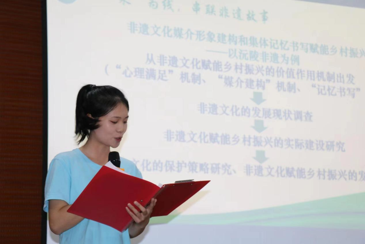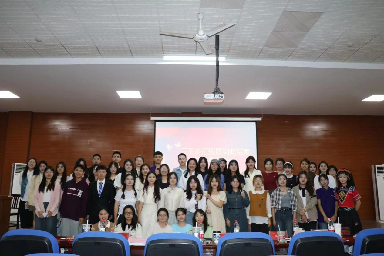 汇报展伊始,学工办陈安琪介绍本次三下乡基本情况。此次汇报分为乡村振兴、支教兴梦、文化聚焦、社会关注四大篇章,汇报队伍采用视频、图片、宣传手册等多种形式进行展示。