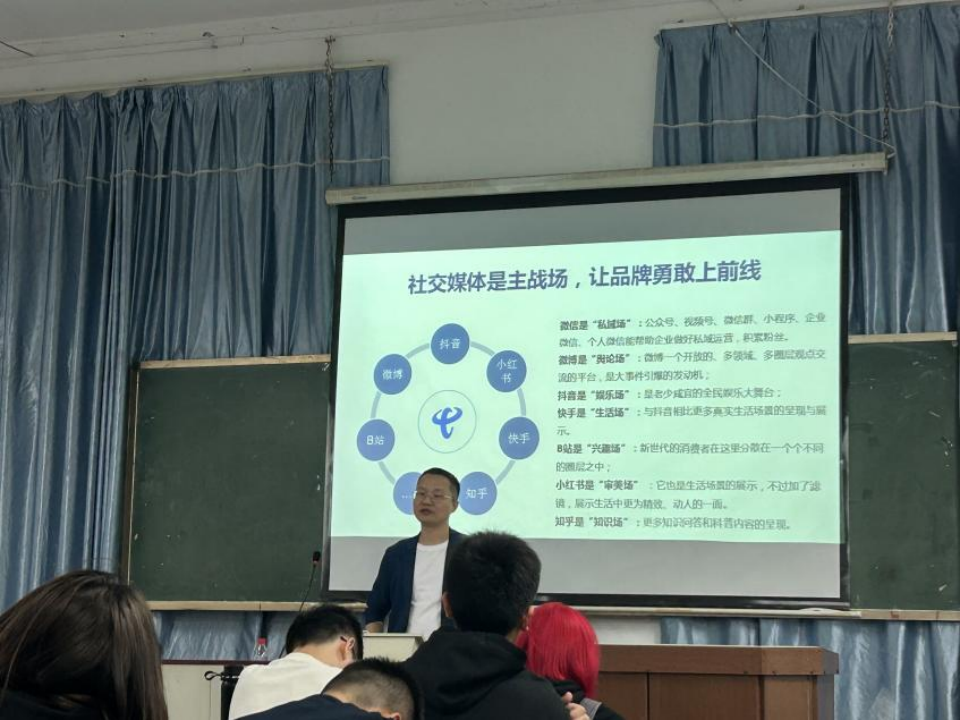(通讯员闵乐妍)11月7日晚,广告实务讲座“品牌的真相”在学院401教室举行,省广集团事业群副总经理彭旭知先生担任本次讲座的主讲人,2021级、2022级广告学专业全体同学参加了讲座,刘振老师主持了讲座。彭旭知2005年毕业于湘潭大学广告学专业,在省广集团历任策划总监、事业部副总经理,工作室管理合伙人,事业群副总经理等职务,在品牌管理、创意传播领域有较为深入的研究,曾入选中国品牌节中国100位优秀品牌专家和中国十大营销案例。