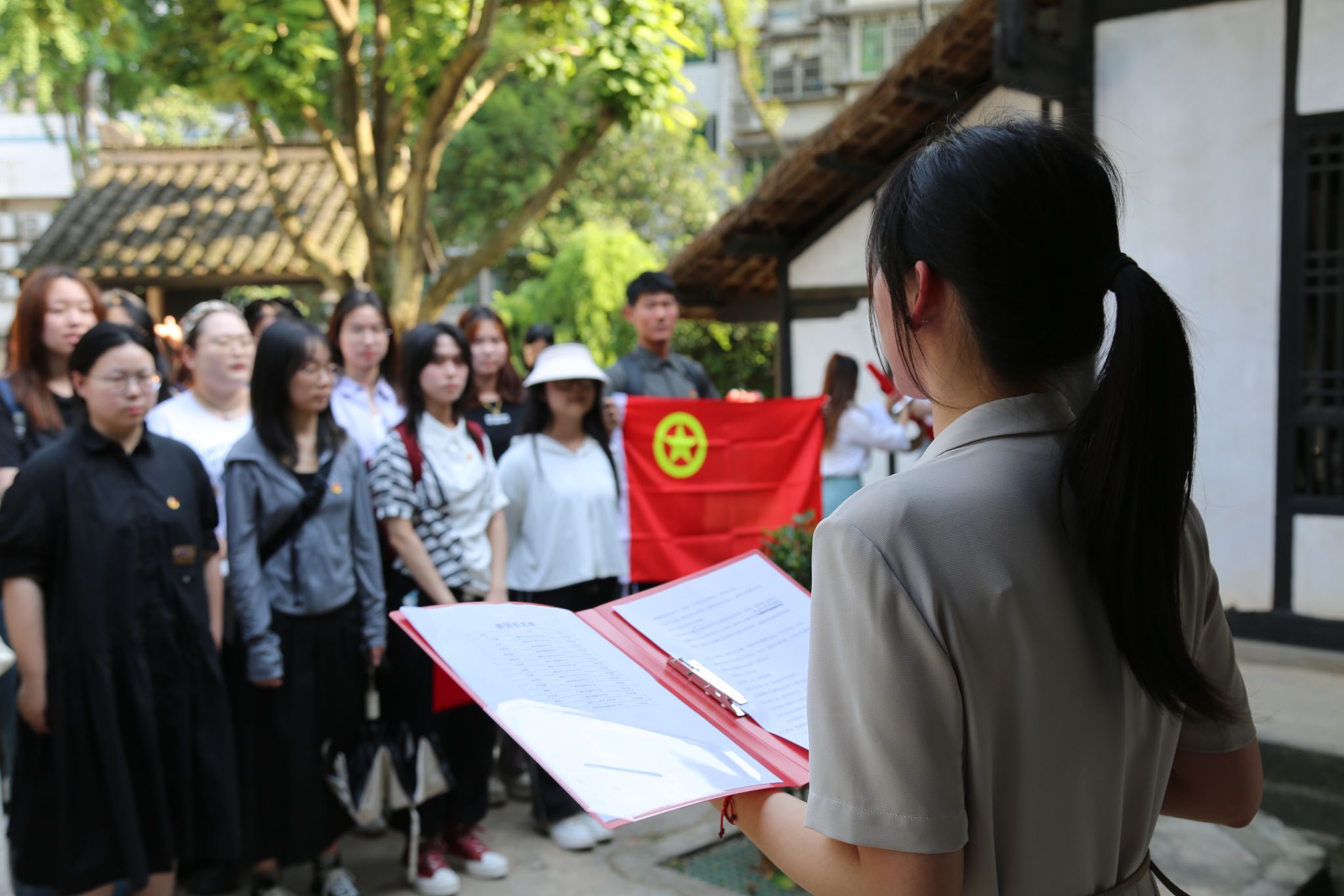 参观活动结束后,在蔡和森故居前,陈安琪宣读新团员名单,院团委组织部部长领读誓词,全体团员庄严宣誓。新团员代表在发言中表示,成为共青团员,不只是拥有了一个新身份,更是担当起一份新责任。要厚植家国情怀,以更昂扬的精神风貌投入到日后的学习工作中,发挥先锋模范作用,为实现中华民族伟大复兴贡献青年的力量。