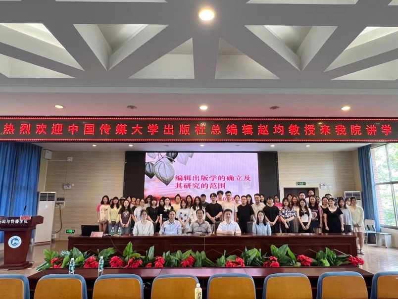 蔡颂教授做总结讲话,他认为赵均教授从编辑出版学的历史沿革展开叙述,深入浅出,对编辑出版学的学科研究与未来发展做出独到见解与深刻分析。近年来,出版学科发展势头强劲,中宣部、教育部联合印发了《关于推进出版学科专业共建工作的实施意见》。当前正是出版学科发展的春天,老师和同学们都应该紧紧把握这一发展机遇。讲座在师生热烈的掌声中圆满结束。