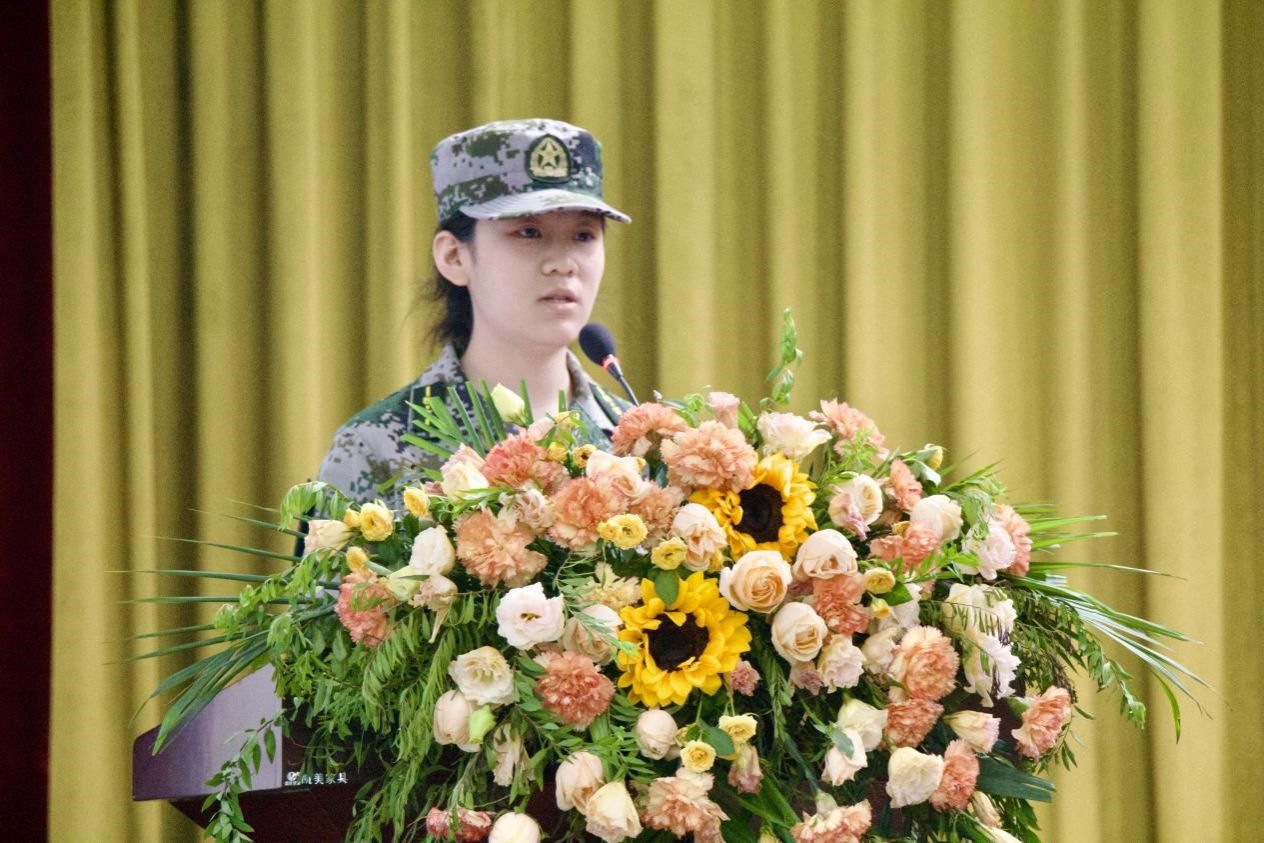 教官代表张馨怡代表全体教官表示,他们将充分发挥教官的表率作用,以身作则;同时将秉承循序渐进的原则,科学组训,均衡发展,带领同学们坚强意志,突破自我,圆满完成军训任务。
