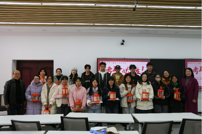 李泳波和张小春为考研学子们发放考研大礼包。考研大礼包饱含着学院对同学们的额美好祝愿,充分彰显了新传院对学生考研工作的高度重视,在寒冷的冬日为考研学子们送去了温暖与力量。