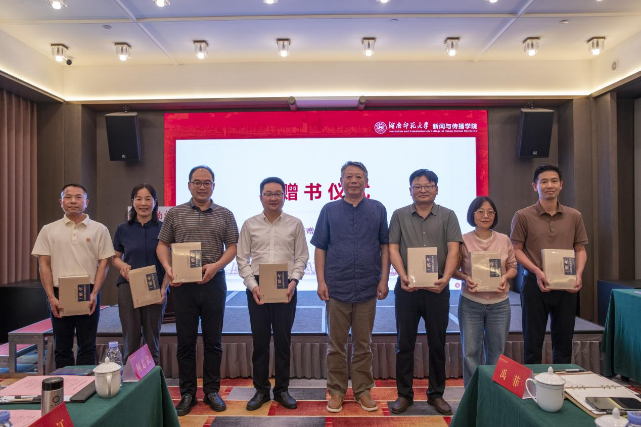 张昆向参会院校代表怀化学院副校长姚劲松、中南大学人文学院院长范明献、湖南大学太阳集团tyc151副院长阳美燕、长沙理工大学文学与新闻传播学院院长刘建新、吉首大学人事处处长彭广林、湘潭大学文学与新闻学院副院长田华、我院副院长燕道成等赠送了《中国新闻传播教育年鉴》。