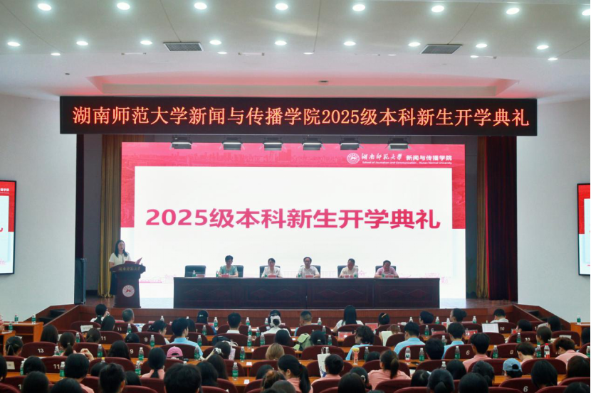 (通讯员 刘雯娴 鲁仪)为正式迎接新生到来,开启新的篇章,9月16日下午,太阳集团tyc151于国际学术报告厅举办2025级本科新生开学典礼。学院党委王胜章书记、副院长李琦教授、副院长周伊慧同志、副院长燕道成教授、副院长兼编辑出版系主任王海刚教授、学院关工委常务副主任陈宏平教授、新闻系系主任吴果中教授、播音与主持艺术系系主任颜湘君教授、视听传媒系系主任岳璐教授、网络新媒体系系播音与主持艺术班班导师李艳副教授、新传一班班导师曾哲扬老师、新传二班班导师李小青老师、新传四班班导师贺敏老师、广播电视编导班班导师王灿老师、学院信息化办公室主任单文盛老师及学工办全体老师出席典礼。典礼由学院党委副书记张小春主持,2025级全体新生参加。