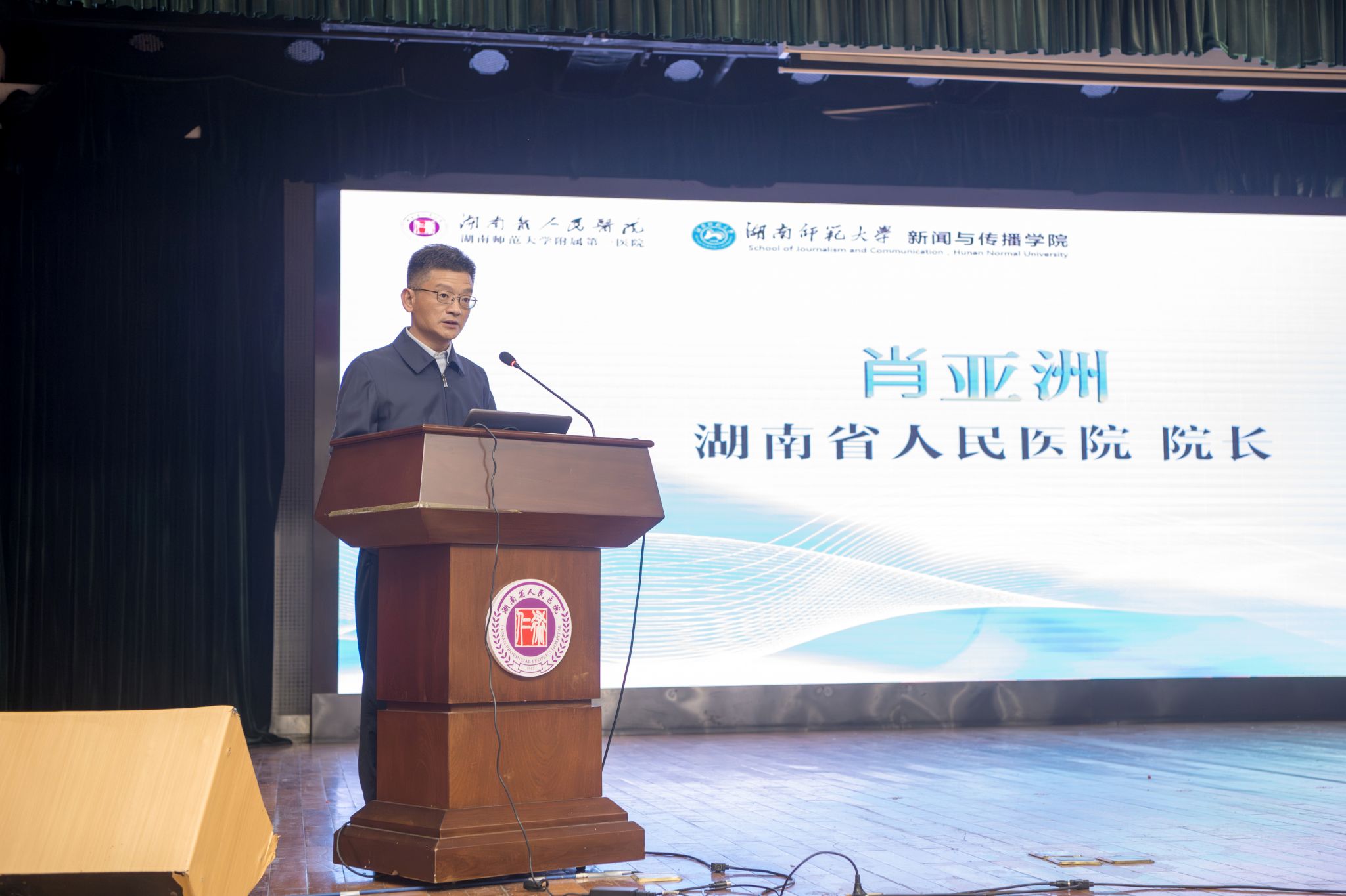 肖亚洲介绍了共建社会实践基地的相关情况,他表示,健康传播是践行‘健康中国’战略的重要支撑,湖南省人民医院作为省内医疗服务的标杆单位,拥有丰富的临床资源与厚重的人文积淀,而太阳集团tyc151太阳集团tyc151在传播理论研究、人才培养及新媒体实践方面具备鲜明优势。此次基地共建,正是要搭建‘医疗资源+传播专业’的协同平台,未来双方将围绕人才联合培养、健康科普创作、科研项目合作等领域深化协作,共同探索医媒融合新路径。