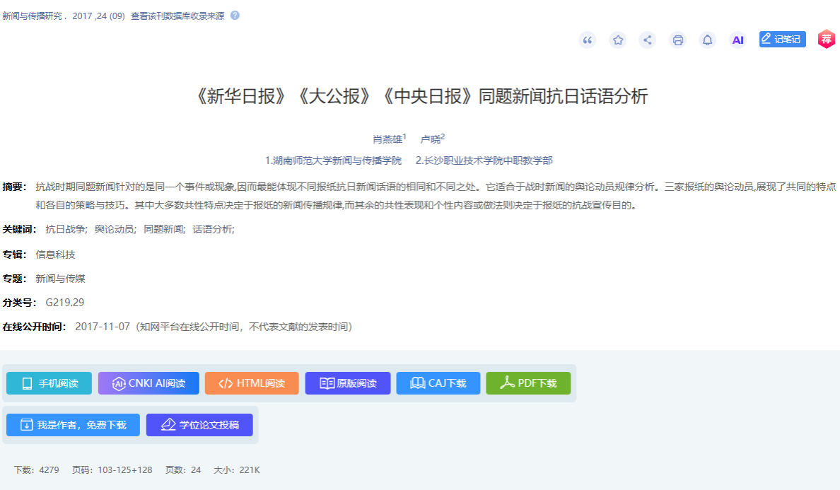 (通讯员 王倩)近日,据权威学术数据统计,我院肖燕雄教授、吴果中教授发表于新闻传播学顶尖期刊《新闻与传播研究》的论文,分别以4272次、3353次下载量位列该栏目Top3与Top9,充分彰显了我院在新闻史研究领域的扎实积淀与学术影响力。