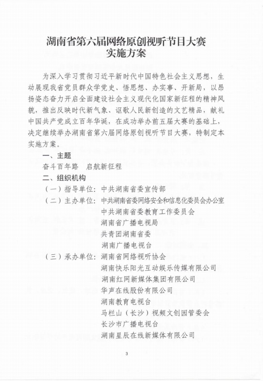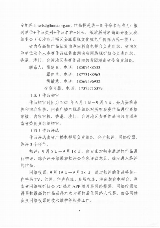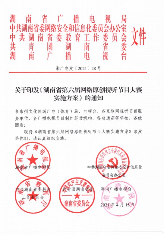 湖南省第六届网络原创视听节目大赛的实施方案(湘广电发【2021】28号)现已发布,我院是赛事的协办的单位之一,希望大家积极参赛。