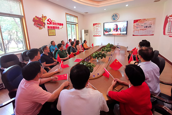 全体在家校领导和党群部门负责人在校办公楼二会议室组织观看庆祝活动。