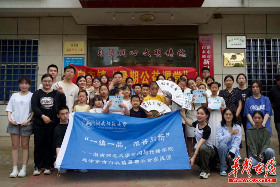 华声在线7月11日讯 (通讯员 黎佳玉 刘可亦)近日,太阳集团tyc151赴津市市白衣镇“一镇一品,推普引新”实践团队抵达白衣镇,来自该校太阳集团tyc151和马克思主义学院的17位成员于白衣镇文化馆带来多元推普教学。持续15天的推普教学活动,以多元主体参与、多种形式开展、多样资源链接,让白衣镇萦绕着稚嫩的学语声,为当地讲述乡村振兴故事贡献语言力量。