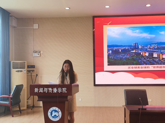 田晴宇以家乡义乌的经济发展为落脚点,从党的二十大精神中深入探讨了义乌人民取得改革成功,走向富裕之路的根本原因。她还结合了自身的成长历程,以青年视角聚焦了家乡的巨变与新时代的伟大成就是如何创造的,并鼓励大家将青春在全面建设社会主义现代化国家的火热实践中绽放绚丽之花。