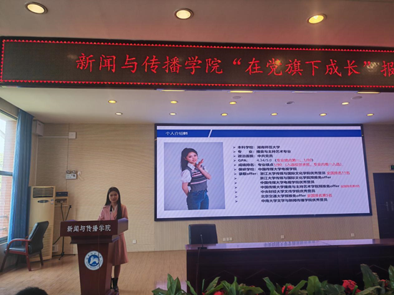 (通讯员 张妍 吴世辉)在党旗下沐浴春风,在新时代奋进拼搏。4月11日中午,我院在书山论坛举行了“在党旗下成长”报告分享会暨师大之星巡回报告会。由“在党旗下成长”宣讲团成员田晴宇,第十八届“师大之星”青春宣讲团成员张倩和汤屈进行分享。学生工作办公室主任、21级辅导员欧阳丹玲,22级辅导员王洋参会。