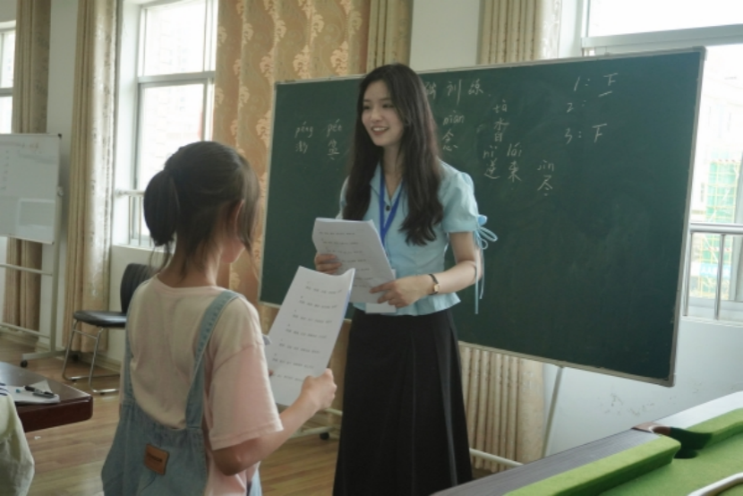 课堂充满欢声笑语,同学们眼中饱含求知的渴望,教学课程就在这样融洽愉快的氛围中一一展开。普通话课程以职业理想引入,启发同学们理解普通话在日常生活以及未来成长过程中的重要性。通过基础的词语带读,同学们的普通话发音、词汇量得到提升,为后期诗歌朗读打下基础。摄影课堂上,课程组负责人介绍了相机的发展历程,以及角度和光影的具体专业知识,并通过现场实践拍摄的方式来让同学们切身体会摄影的魅力。