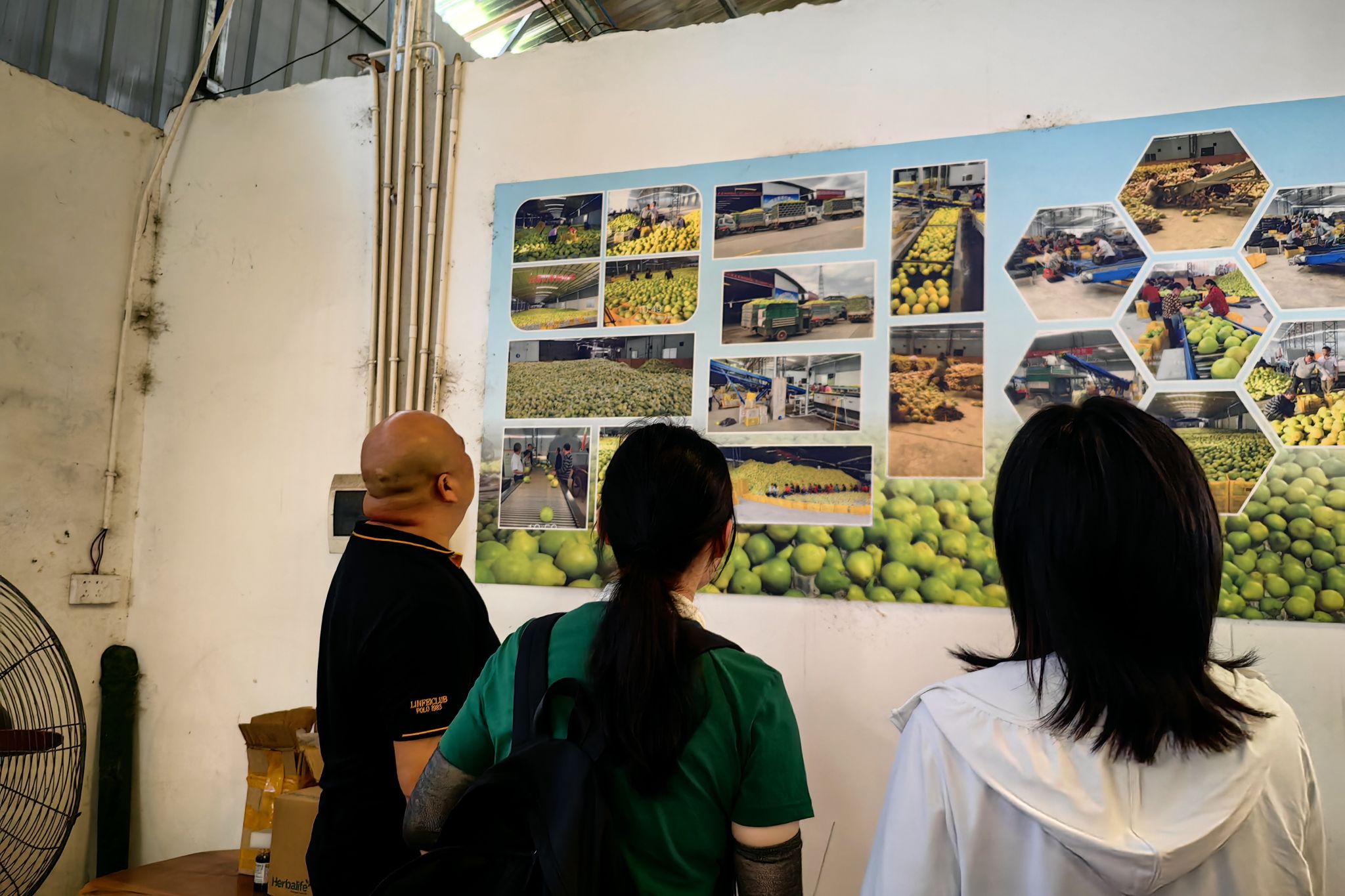 16日,实践团成员参观了云雾山香柚产业园及其生产基地。香柚园占地3000余亩,以规模化发展为特色。香柚园法人代表何辉向实践团成员介绍了香柚生产过程以及销售状况。云雾山香柚园以科技化监测手段管控香柚品质,强化自身优势。同时,产业园积极与东南亚等地开展贸易合作,推动江永香柚走向国际市场。何辉表示,要促进香柚产业持续向好发展,需注重品牌打造,扩大传播力与影响力。