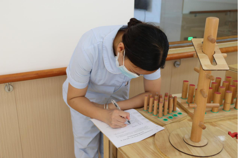 康养中心的医护人员正在填写调查问卷